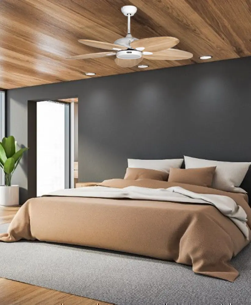 Yüksek performans, estetik tasarım ve kullanıcı dostu özellikleriyle bu tavan vantilatörü, sizin için ideal iç mekan iklimini oluşturmak için tasarlandı. Şimdi, konfor ve modernlik arayanların tercihi olan bu ürünle tanışma zamanı geldi! 5 adet ahşap kanatlı tavan vantilatörü serinleme amaçlıdır. Hava debisi yüksektir. Tavan vantilatörleri alçıpan tavan ve asma tavanlarda kullanılamaz. Vantilatörün çift yönlü dönme özelliği sayesinde yazı serin geçirmenizi sağlayacaktır.