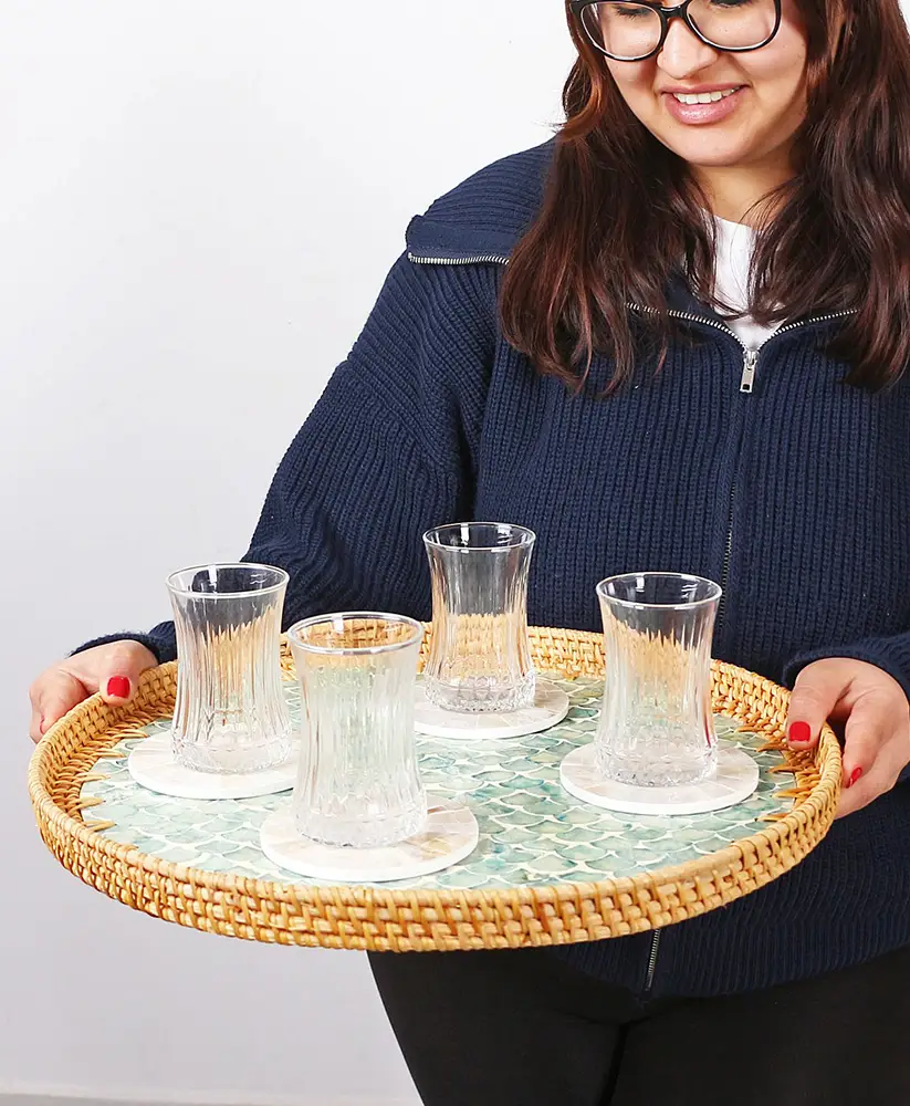 – Tüm yaşam alanlarında kullanıma uygun bu özel ürün, yerel zanaatkarlar tarafından dayanıklı rattan malzemesiyle el işçiliğiyle üretilmiştir. Rattanın doğal dokusu, her bir tepsiye benzersiz bir karakter kazandırır. Üzerindeki sedef detayları ise estetik bir parıltı ekler ve görsel bir cazibe yaratır. Sağlığa zararı olmayan PU vernik kullanılarak ürünün korunması sağlanmıştır.