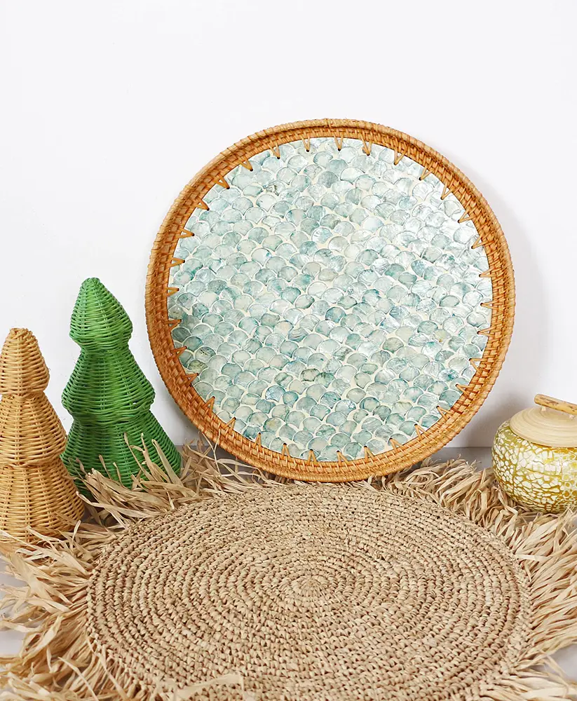 did Risus Dekoratif Rattan Sedefli Tepsi & Duvar Süsü